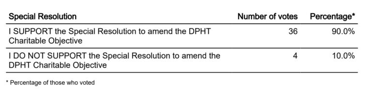 Thank you for all those that voted on the Special Resolution to make changes to the DPHT Charity Objective. My […]